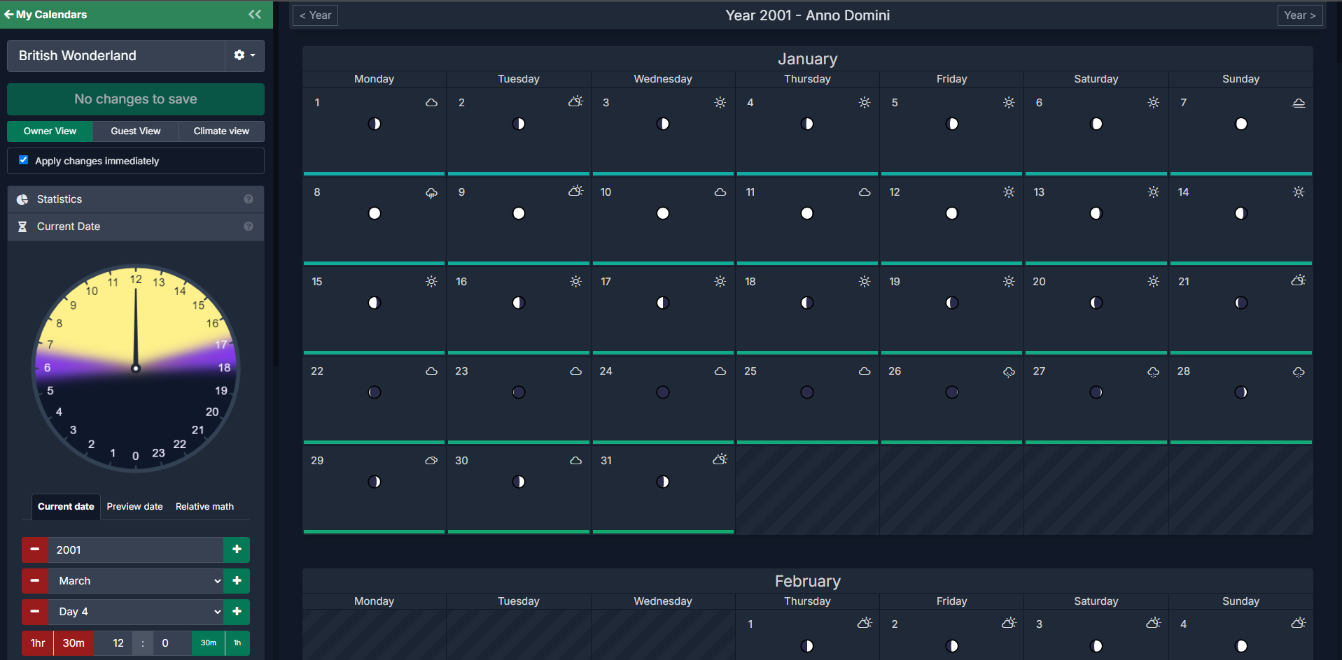 And indeed, Fantasy Calendar is quite a perfect tool for that task. I would write down notes about approximate flow of events, and later assign them to a specific date and time in the Fantasy Calendar, so that is another external app i am using. My only complaint is that it is so bloody janky.
